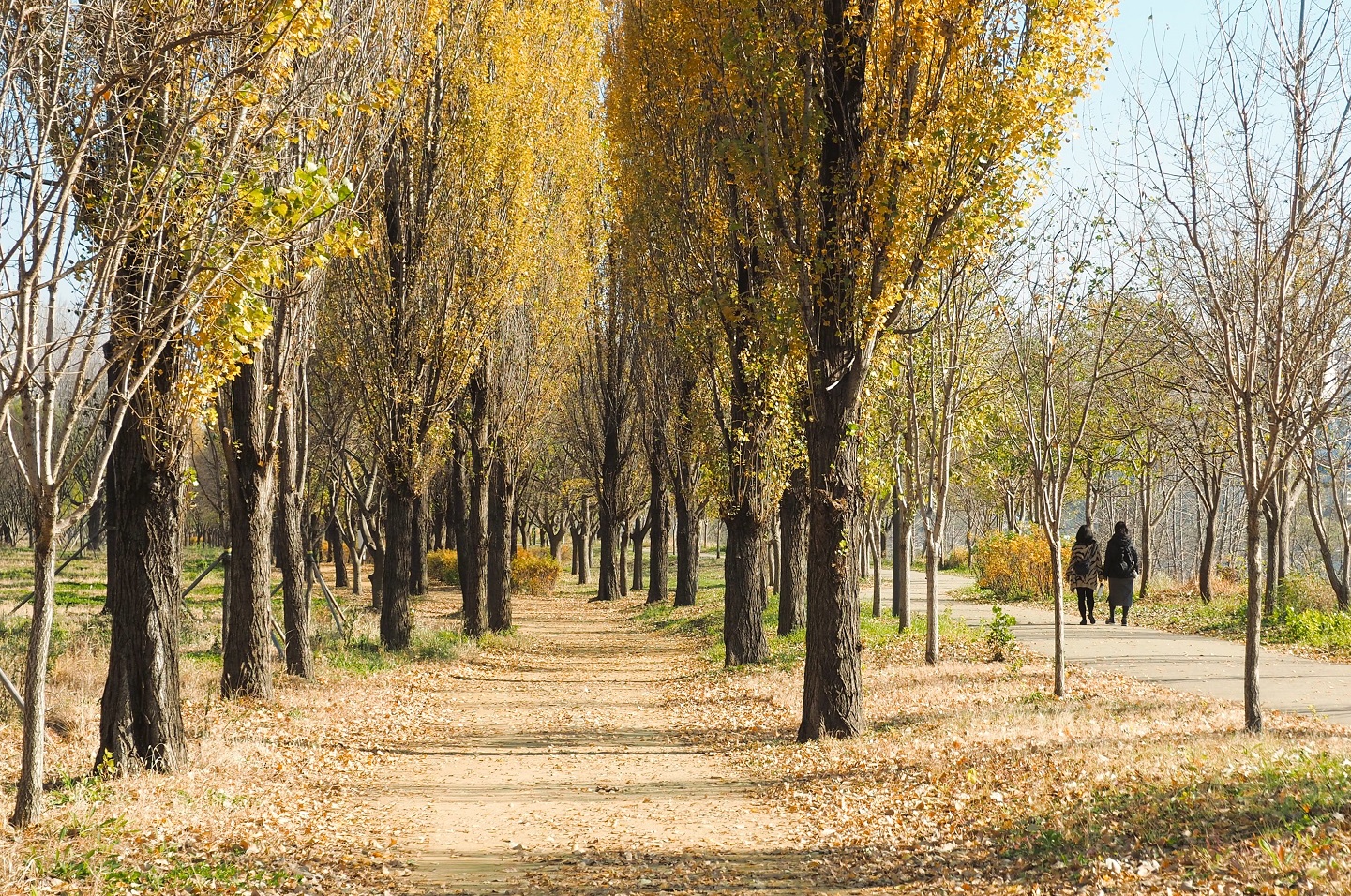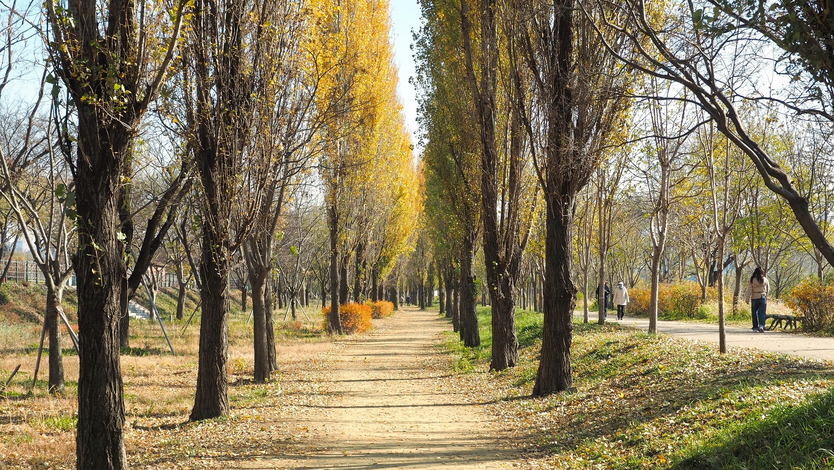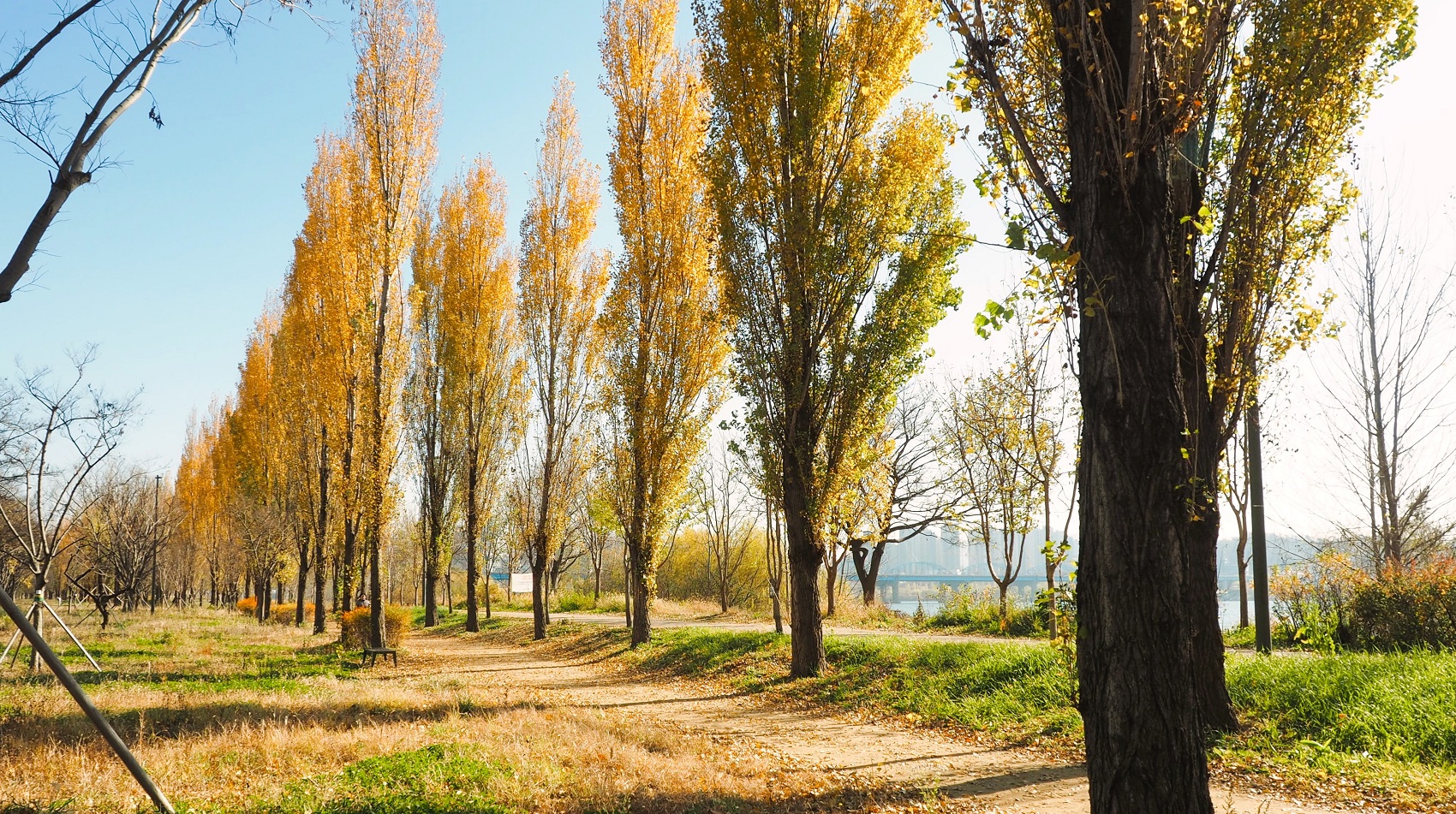 이촌한강공원에는 약 1.5Km구간의 미루나무길이 조성되어 있다.
