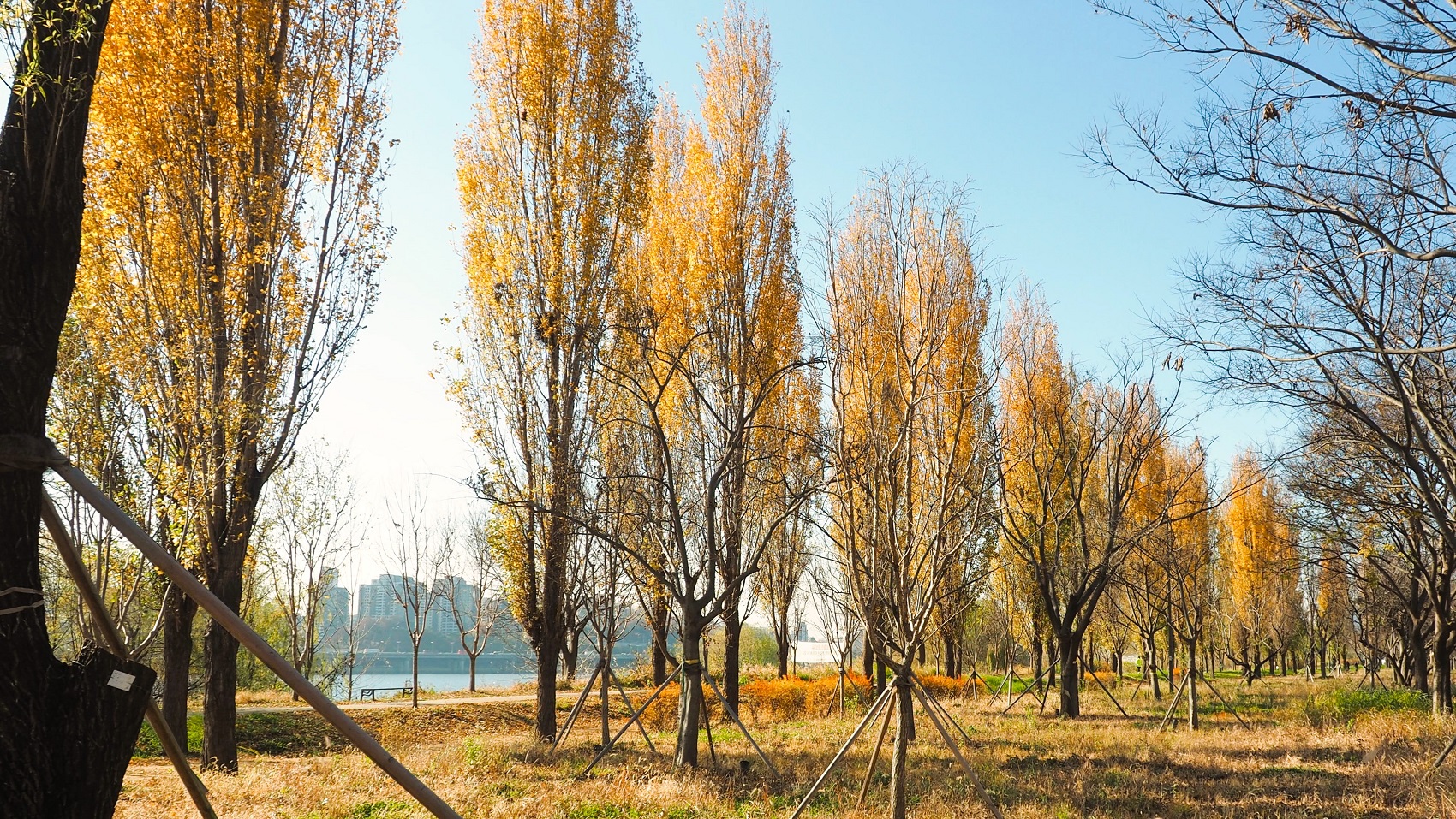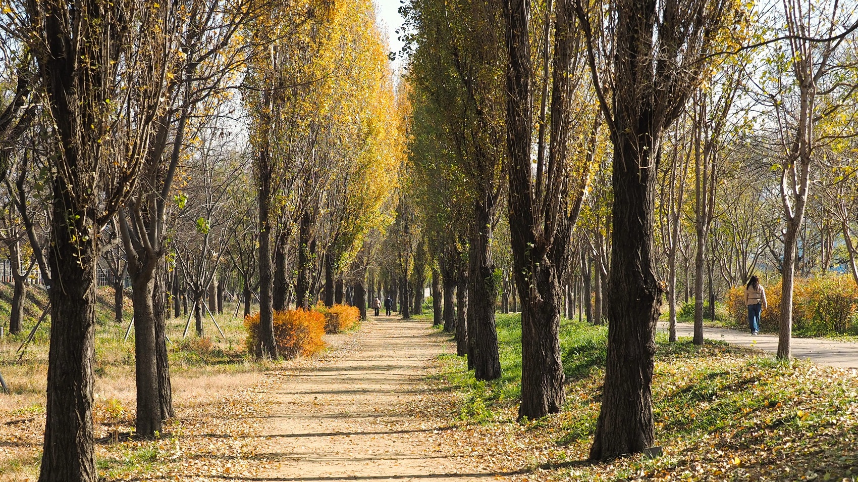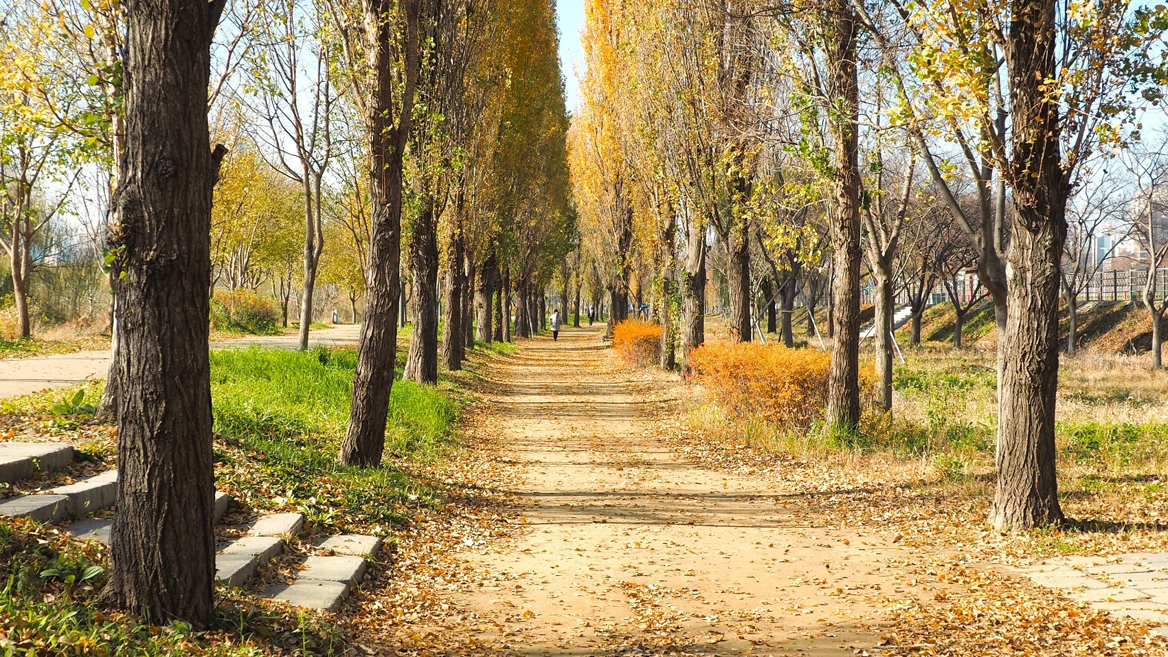 이촌한강공원에는 약 1.5Km구간의 미루나무길이 조성되어 있다.